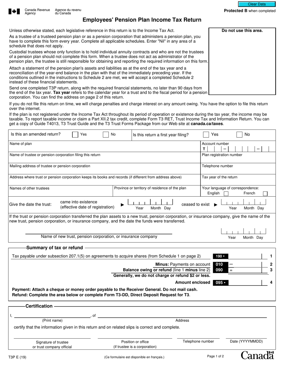 Form T3P Download Fillable PDF or Fill Online Employees' Pension Plan