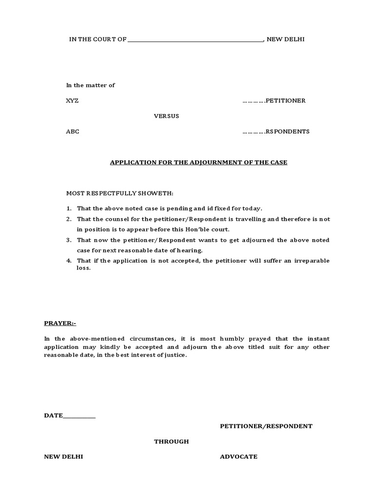 π Draft of adjournment application. proforma application requesting