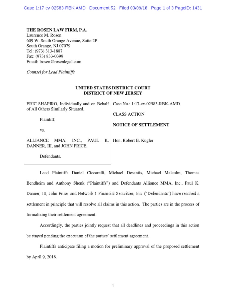 Notice of Settlement Settlement (Litigation) Lawsuit Free 30day