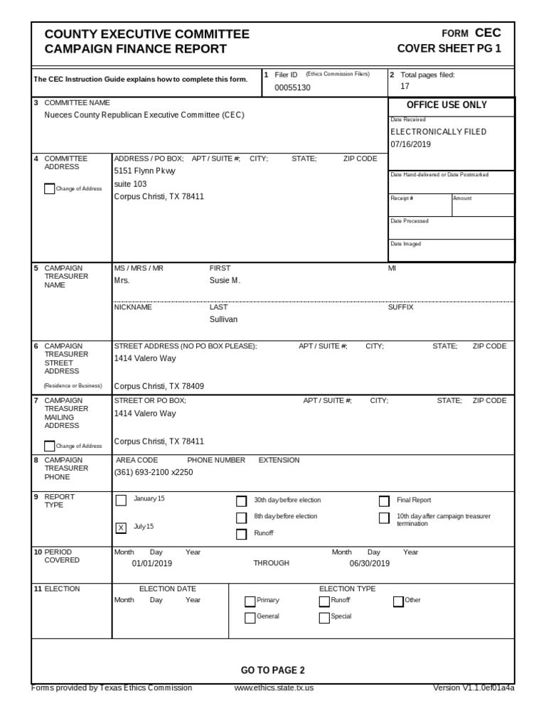 Nueces County Executive Committee Campaign Finance Form Political