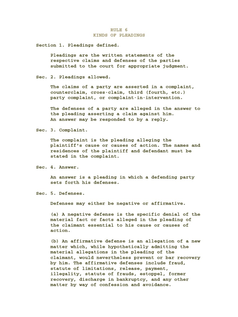 Rule 6 Kinds Of Pleadings Pleading Affirmative Defense