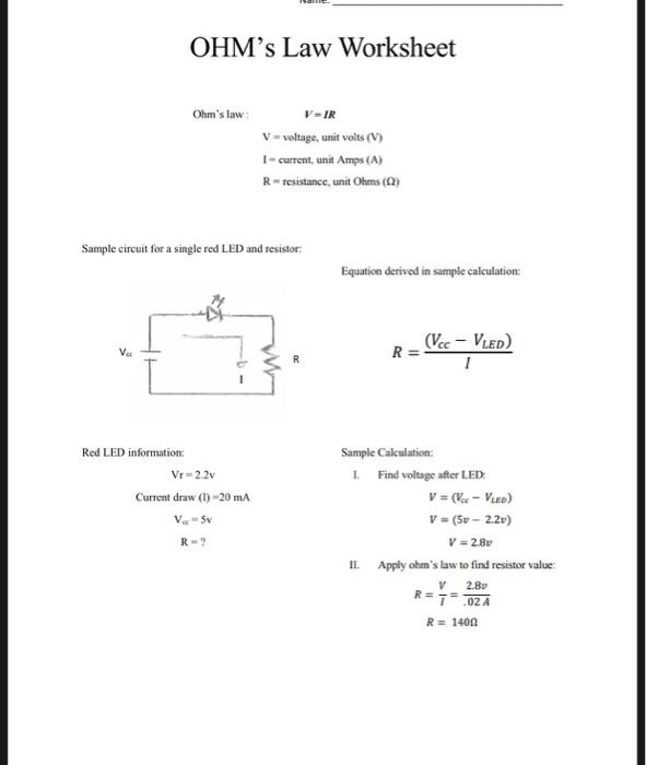 (fill in the blanks, matching, true or false, classification, open ended, critical. Web do you need a digital resource for students to practice ohm's law calculations? Kcl can be used to show how. Web ohm's law practice problems: Web ohm’s law worksheet 𝑽=𝑰𝑹 𝑹= 𝑽 𝑰 𝑰= 𝑽 𝑹 show all of your work.