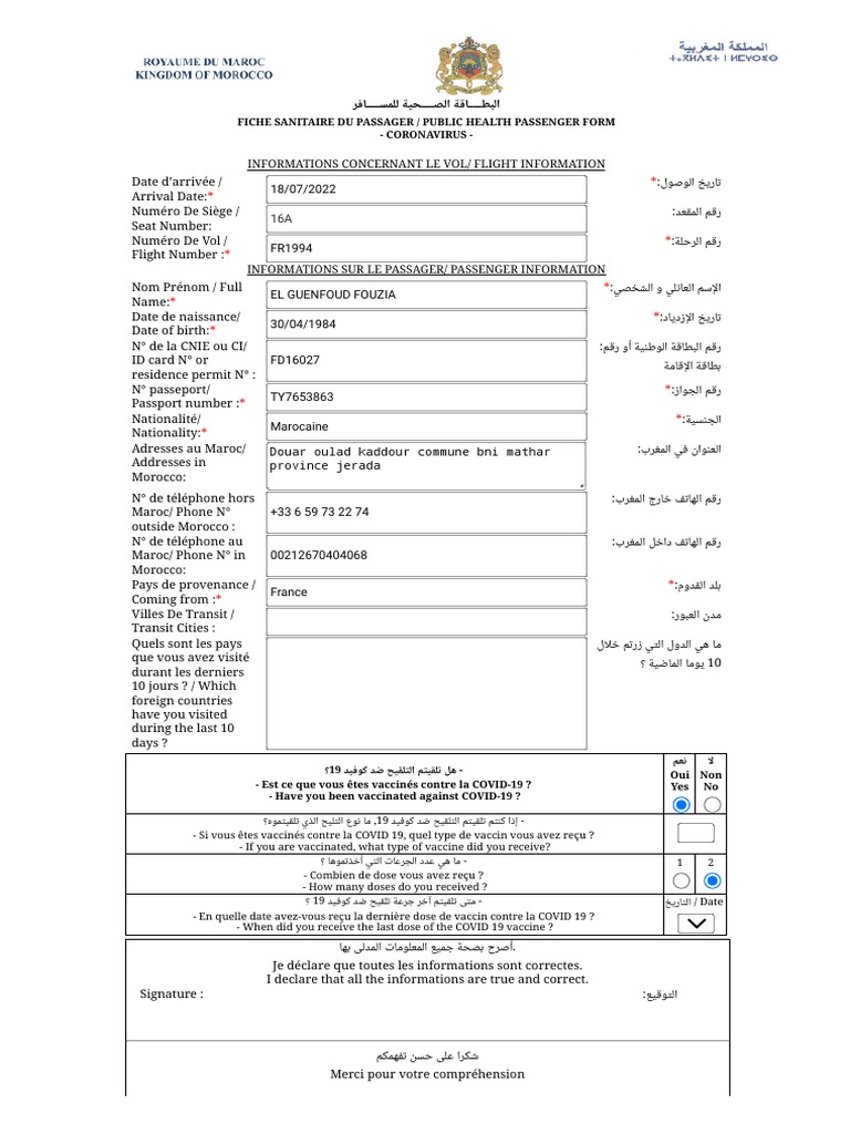 Web handy tips for filling out p 022 oda online. Web morocco about the obligation to fill in the passenger health form (fsp)online, via the following link:. All passengers, upon arrival at one of our airports, are required to present the. Nom prénom / full *:اﻹﺳﻢ اﻟﻌﺎﺋﻠﻲ و اﻟﺸﺨﺼﻲ.
