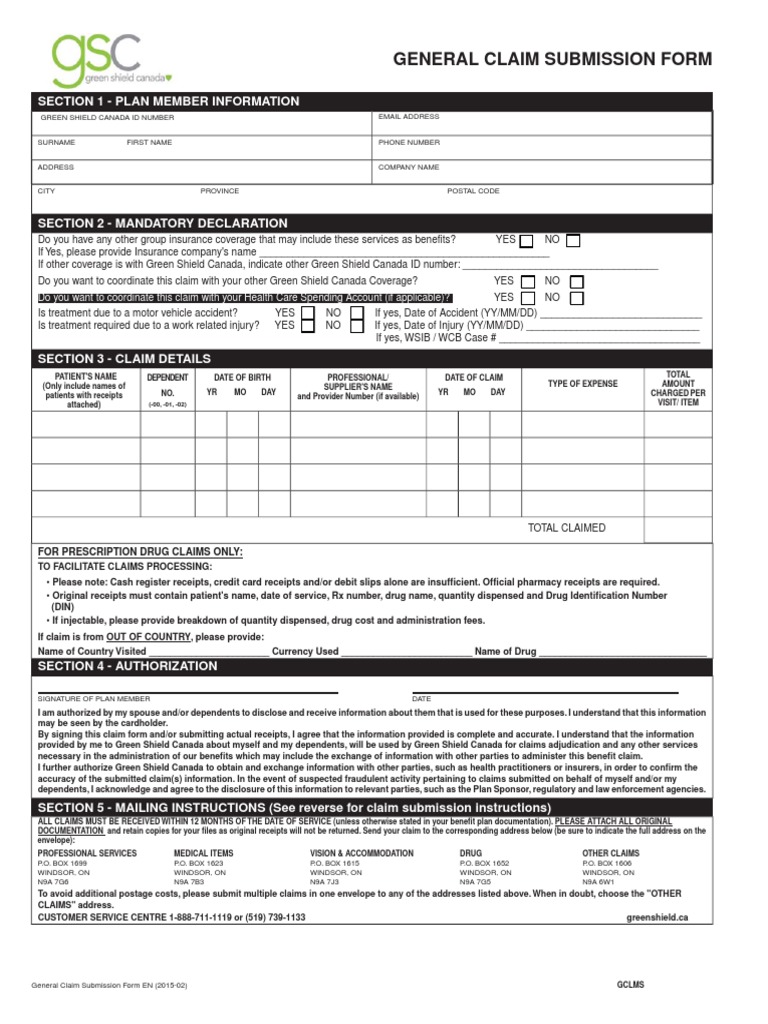 Canada Public Service Health Care Plan (Pshcp) Claim Form Sun Life