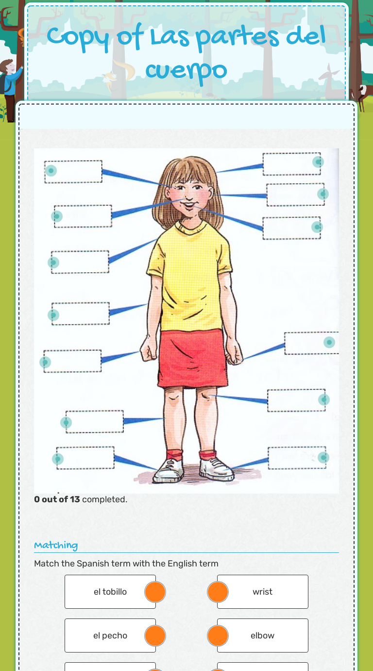 Copy of Las partes del cuerpo Interactive Worksheet by Haley Leber
