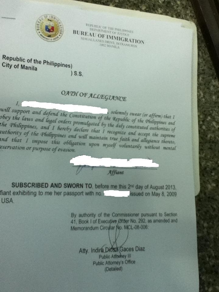 Web i, , respectfully request the philippine consulate general to administer my oath of allegiance to the republic of. The secretary of foreign affairs; Affidavit of passport destruction or mutilation. 9225 are advised to visit and read the contents of to website of the u.s.