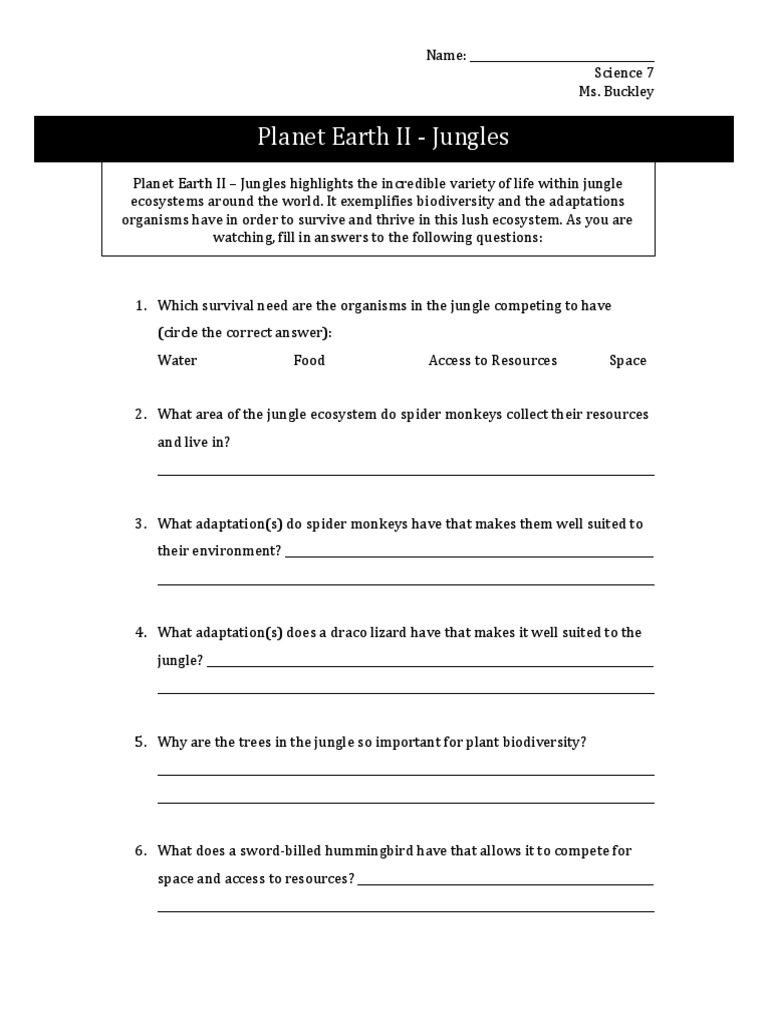 Web This Is A Worksheet Set For Students To Complete As They Watch The Planet Earth Ii Jungles Episode.