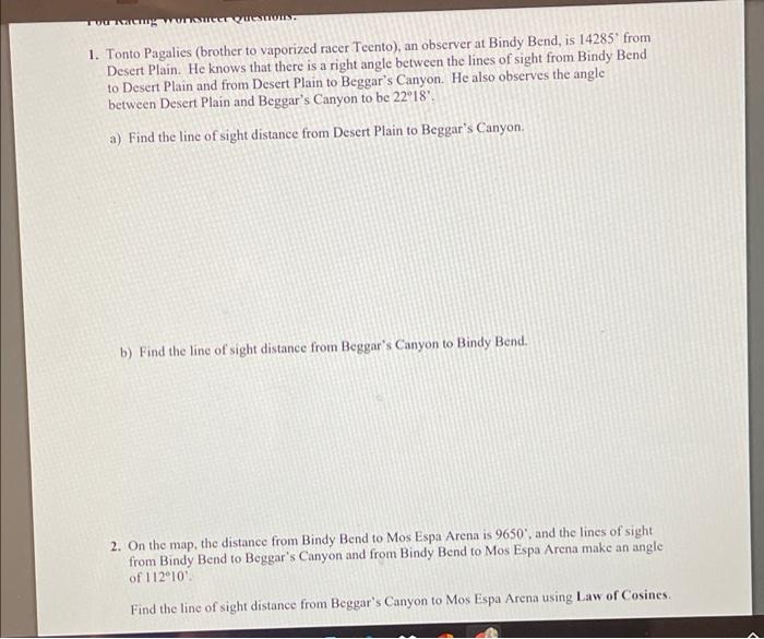 Web Web Pod Racing Worksheet Trigonometry Tonto Pagalies (Brother To Vaporized Racer Teento), An Observer At Bindy Bend, Is 14285' From.