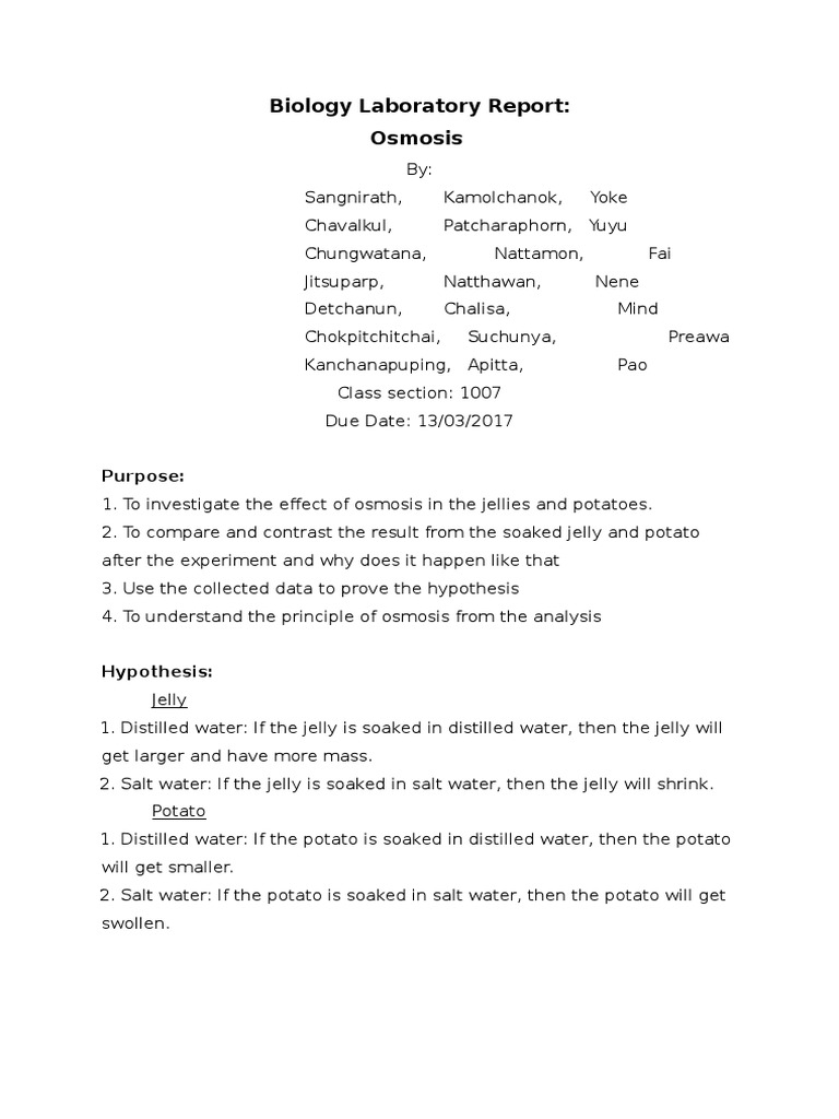 Sample Lab Report Potato Osmosis Osmosis Chemistry