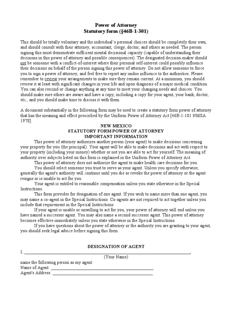 Web new mexico also recently made it more difficult for institutions not to accept powers of attorney by allowing the institution to be. Statutory form power of attorney. Web new mexico power of attorney forms (9 types) create a high quality document now! This is an important document. Web new mexico statutory power of attorney.