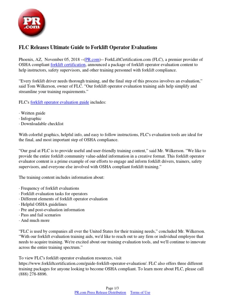 FLC Releases Ultimate Guide to Forklift Operator Evaluations Forklift