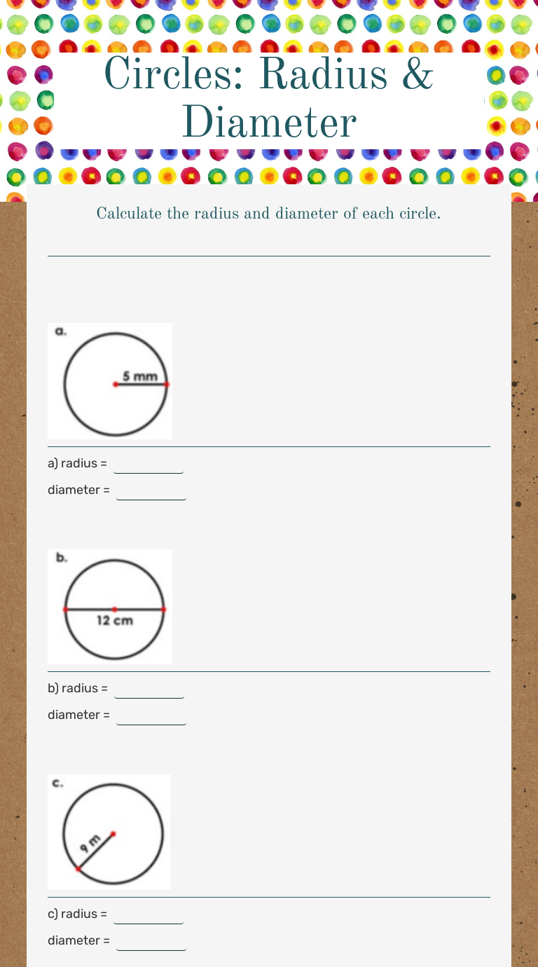 Which circle has a diameter of 36 km?c 2. Worksheets free pdf wish list. Web live worksheets > english. Easy depicting circles with whole number measures, this set of printables tasks.