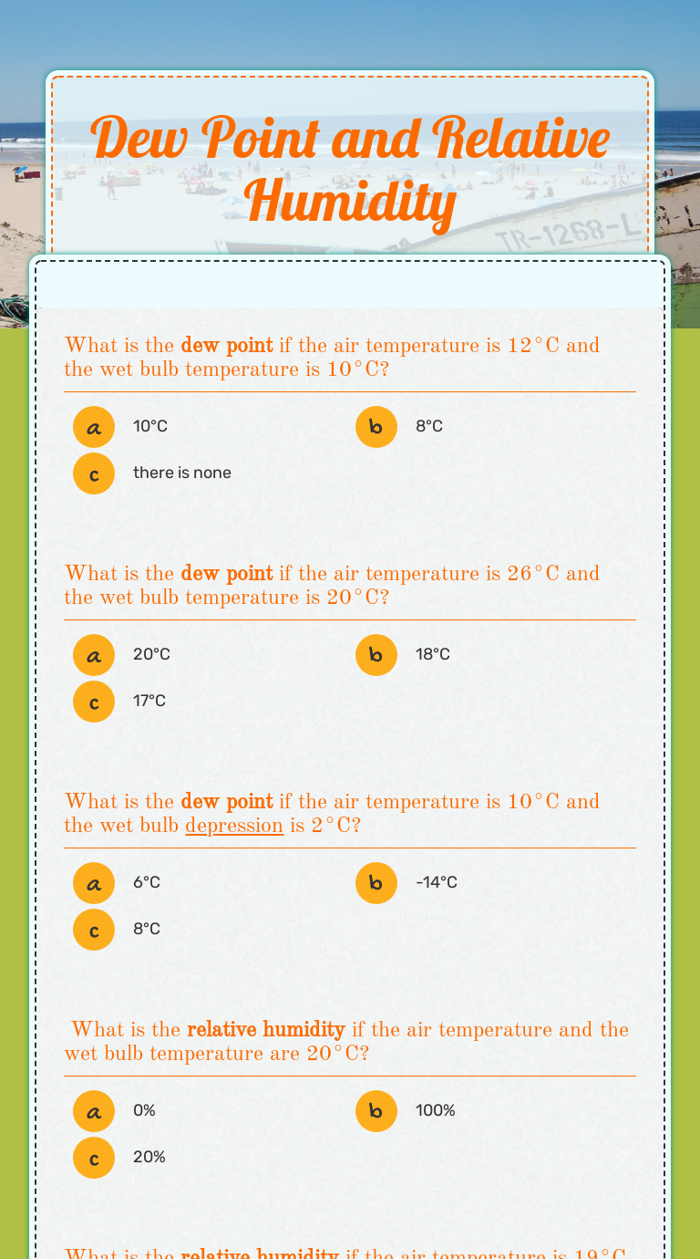 Relative Humidity Dew Point QuizTC