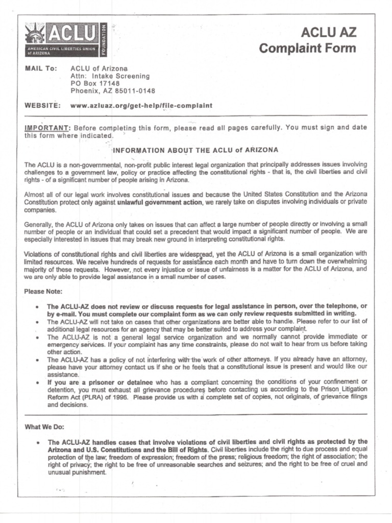 ACLUAZ COMPLAINT FORM (english) American Civil Liberties Union