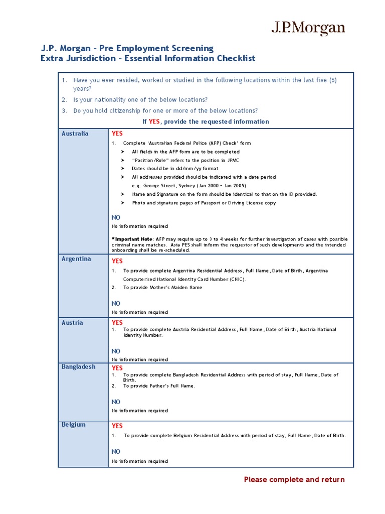 Extra Jurisdiction Essential Information Checklist OCT2013