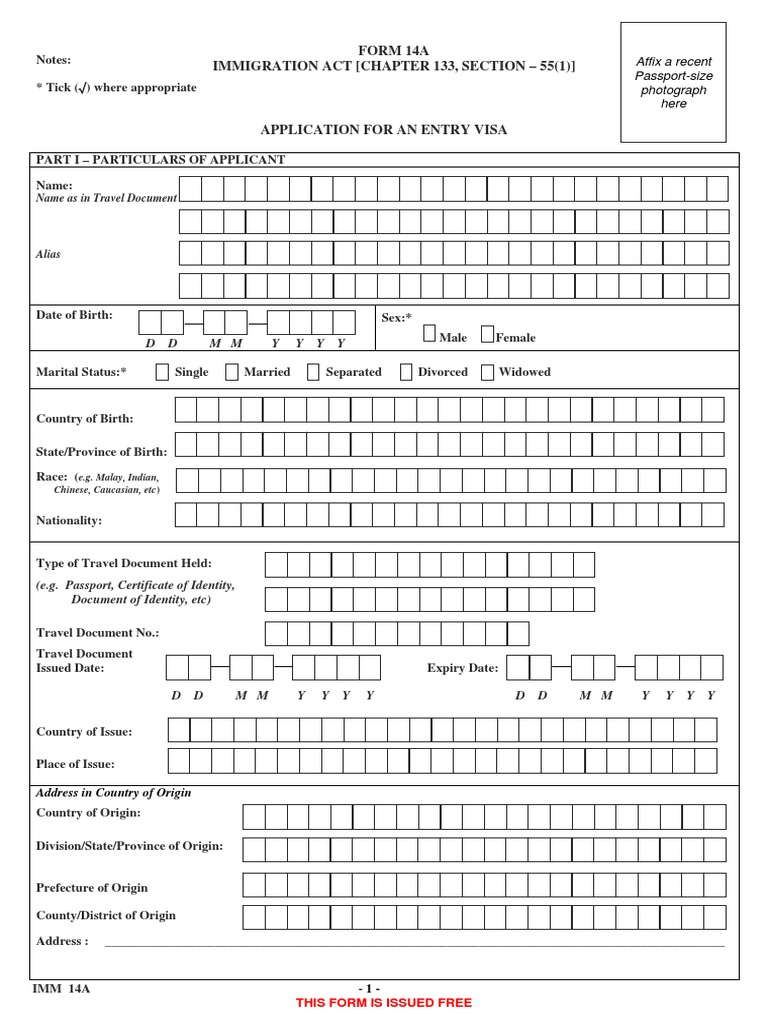 Photograph here * check the box where appropriate. Immigration act [chapter 133, section 55(1)] passports act [no. (a) completed and signed form 14a. To be filled in the same sequence as it appears on your passport/travel document. Ensure that it is filled legibly and any incomplete.