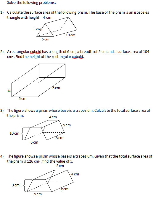 Find the surface area of solids (II)(Worksheets and Solutions)
