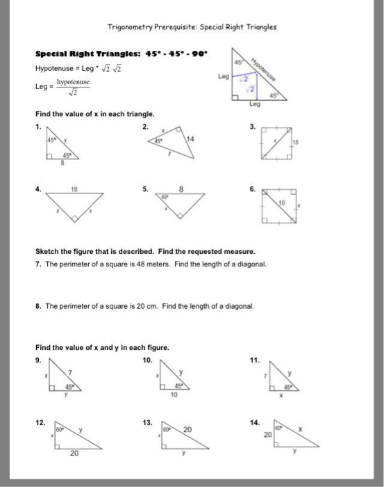 Solved Trigonometry Prerequisite Special Right Triangles