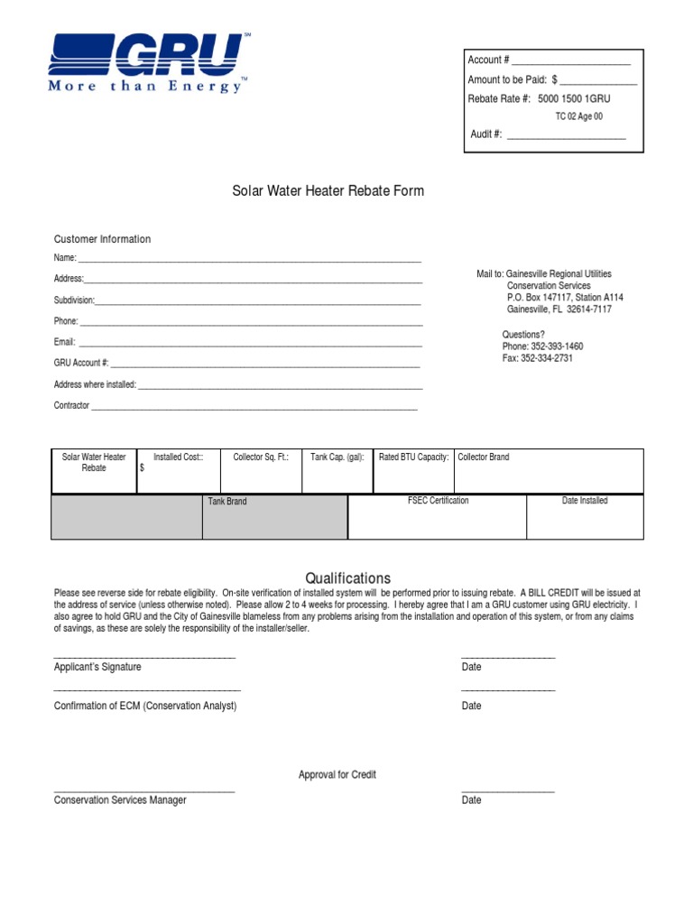 Solar Water Heater Rebate Form Customer Information Water Heating