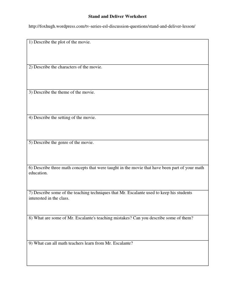 Web web stand and deliver movie worksheet. Teacher what was his job. Stand and deliver was made in 1988 and is based on a true story. This set of comprehension questions and discussion questions accompanies the film stand and deliver..