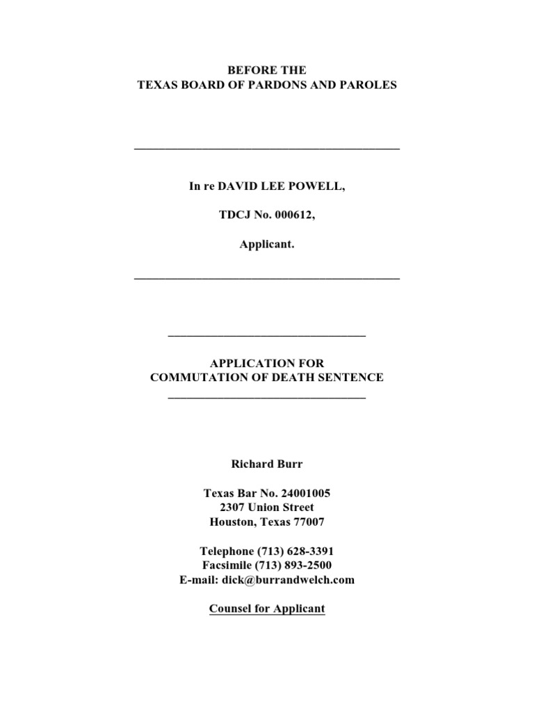 David Powell's Clemency Application to the Texas Board of Pardons and