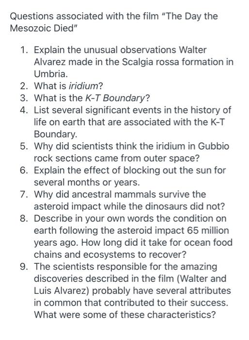 Find other quizzes for science and more on quizizz for free! Web several questions are embedded within the short film the day the mesozoic died, which tells the story of the scientific quest to explain. Web the video is actually called the day the mesozoic died, and it also gives viewers a sense of how scientists gather evidence of earth's.