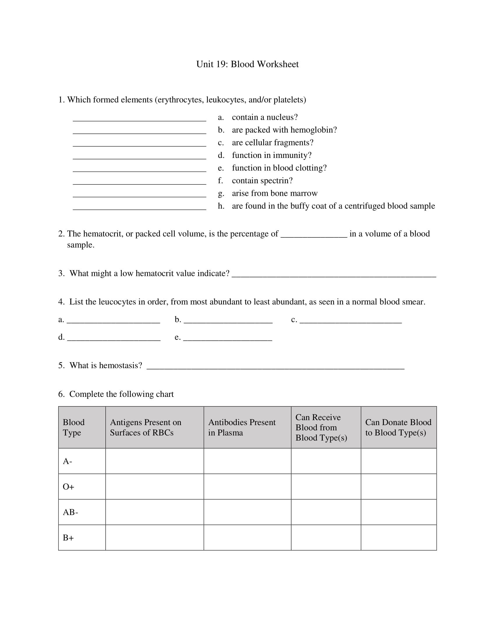 The Wonderful World Of Blood Worksheet Answers kidsworksheetfun