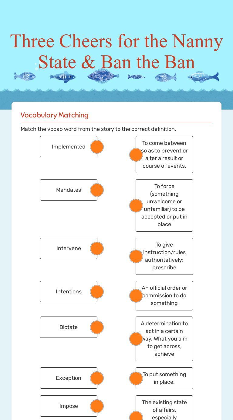 Three cheers for the nanny state. Yes, because impose means to force. Find other quizzes for english and more on quizizz for free! Learn vocabulary, terms, and more with flashcards, games, and other study. Web answer part a first, and then part b.