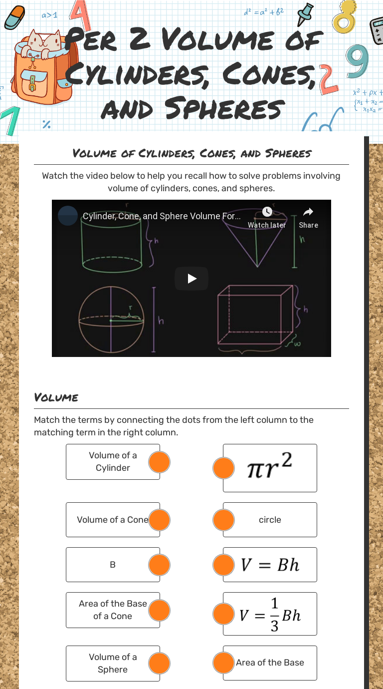 Per 2 Volume of Cylinders, Cones, and Spheres Interactive Worksheet