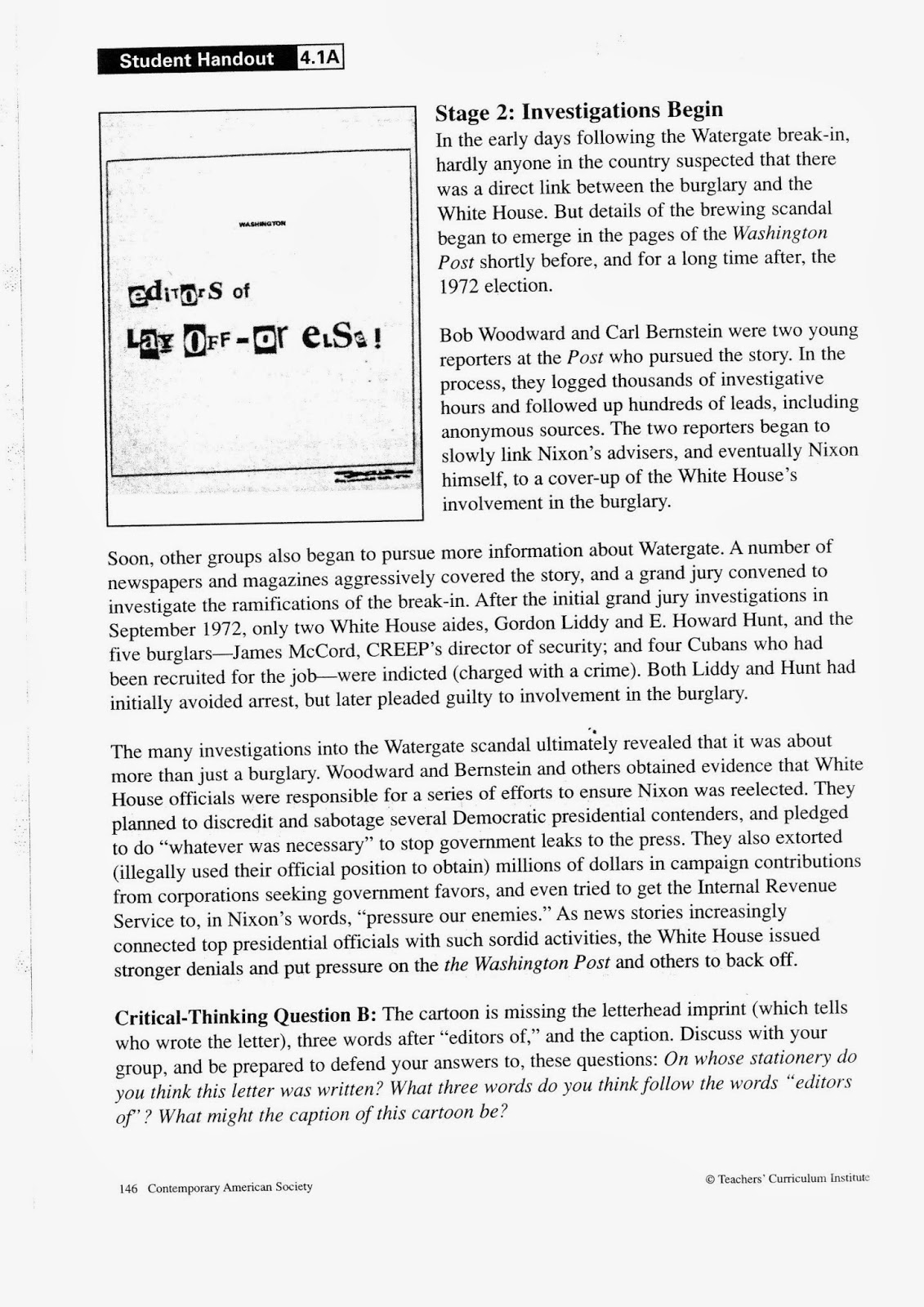 Mr. Bravo's POD Blog 1.4 Watergate Political Cartoon Worksheet