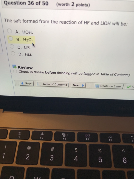 Solved Question 36 of 50 (worth 2 points) The salt formed