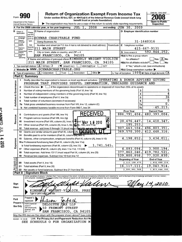 Schwab Charitable Fund 2008 990 501(C) Organization Irs Tax Forms