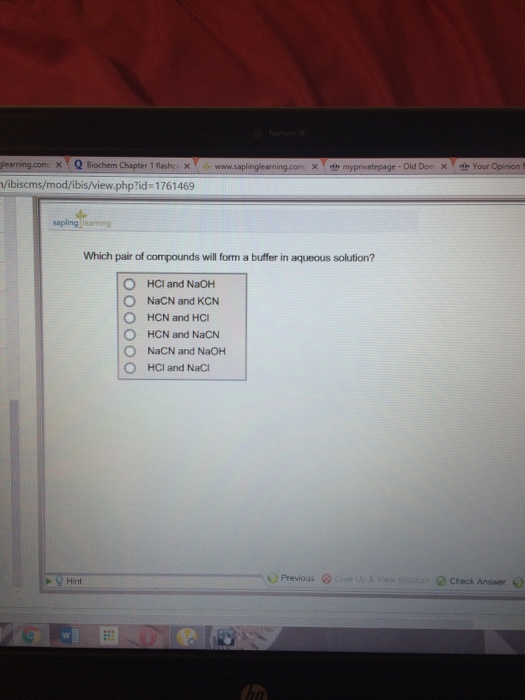Solved Which Pair Of Compounds Act As A Buffer In Aqueous...