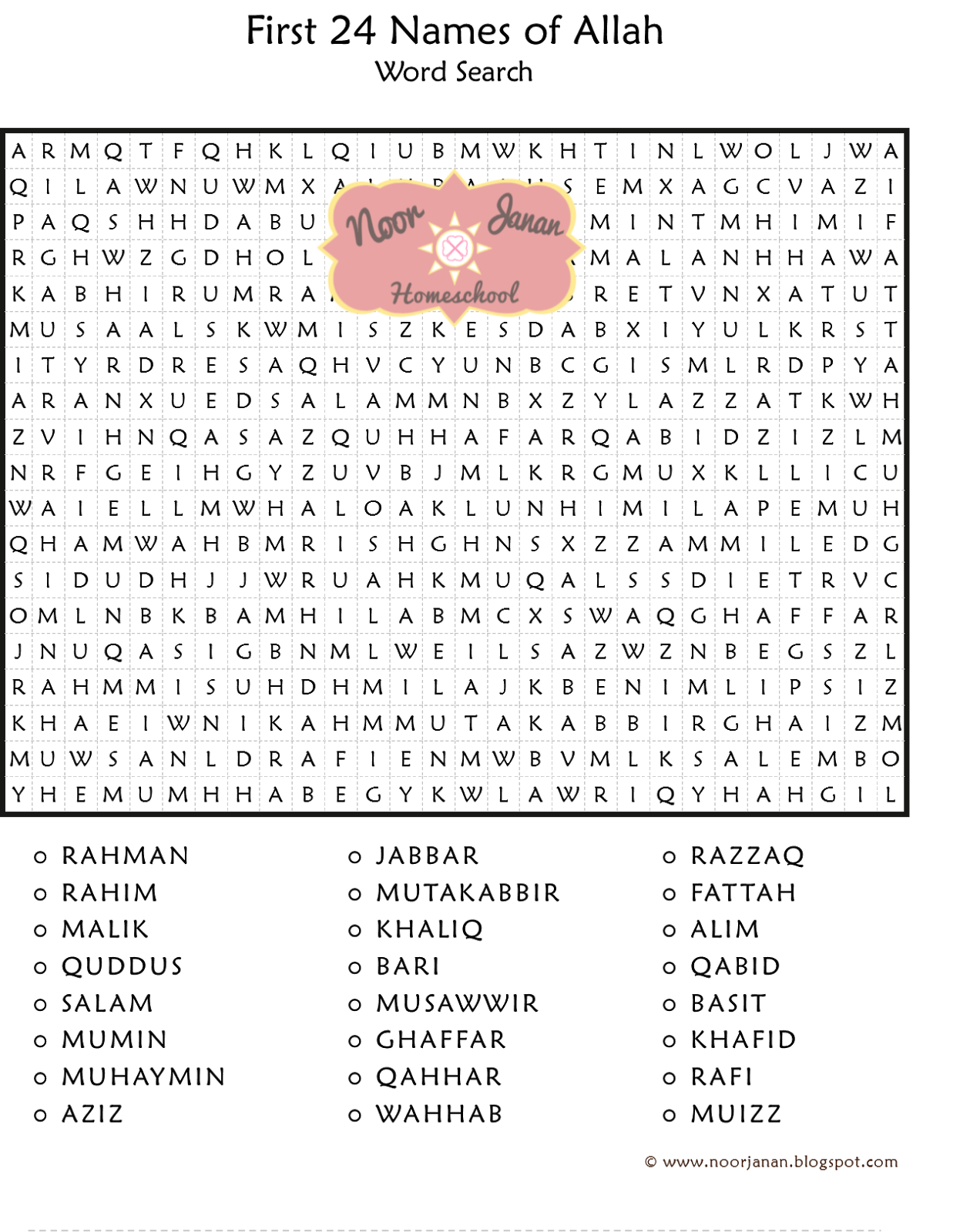 FREE Worksheets Part 1 of the 99 Names of Allah (9 pages) The
