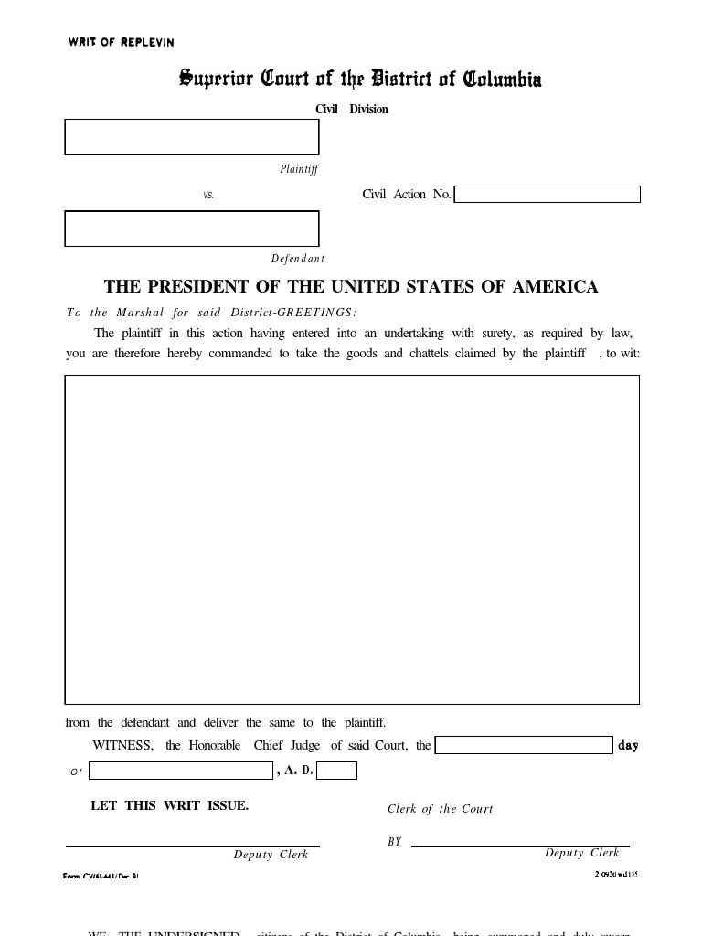 Web This Form Is A Writ Of Replevin.
