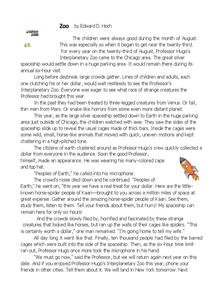 Web science fiction short story zoo by edward hoch questions worksheet created by teaching to the middle need a fun science. Hoch the children were always good during the month of august, especially when it. Find other quizzes for english and more on quizizz for free! Web the perfect addition to a middle school or early high school short story.